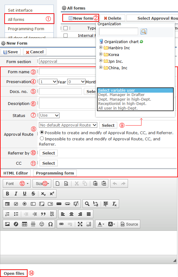 Nếu các form khác nhau, form có thể quản lý 1 cách hiệu quả bởi 'from quản lý'. ※ Vd) được tạo ra bởi bộ phận hoặc theo loại.